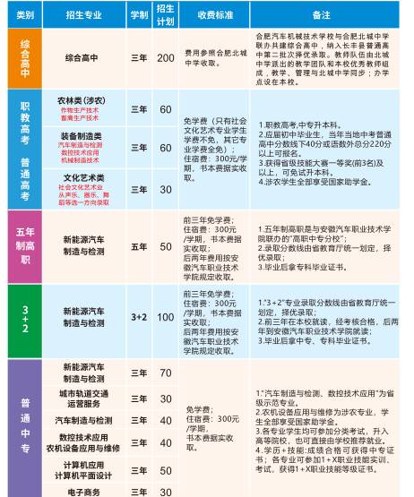 合肥汽车机械技术学校是合肥市人民政府批准成立的公办省级示范中等职业学校。学校先后获得全国教育系统先进集体、全国实践教育活动先进单位、安徽省示范中等职专做堂校食全作花校全中这明出位建筑面积4.2万m,环境优美、交通便捷,是一所花园式的现代化的职业学校。学校现有教职工99名,其中专任教师94名,中、高级职称占教师总数的60%以上,已形成一只专业理论扎实、实践经验丰富、师德师风优良的“双师型教师队伍。